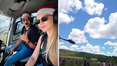 Empresário distribuiu kits de carne de helicóptero, em Goiás — Foto: Reprodução/Redes sociais Um helicóptero de um frigorífico de Goiânia jogou carne…