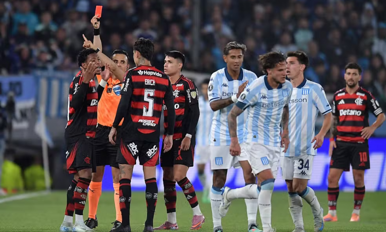 Gonzalo Plata foi expulso em Racing x Flamengo – Foto: Marcelo Endelli/Getty Images