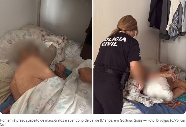 Um homem de 68 anos foi preso suspeito de maus-tratos e abandono do pai de 87 anos, em Goiânia. Segundo o delegado do caso, Alexandre Barros, a investigação apontou que ao deixar de prestar assistência e não comparecer à casa resultou na vulnerabilidade do pai. O filho foi autuado em flagrante e vai responder pelos crimes de abandono, maus-tratos e privação de liberdade.
