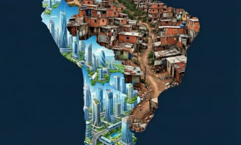 O presidente da Argentina, Javier Milei, compartilhou nesta segunda-feira (15) um post que mostra o mapa do Brasil e de outros países da América do Sul governados pela esquerda composto por favelas. Já os territórios argentino e de países com administrações de direita aparecem como futuristas.