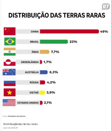 📝Os minerais raros são usados para fabricação de diversos produtos de alta tecnologia, como celulares, computadores, turbinas eólicas, equipamentos médicos e até mesmo mísseis e caças.