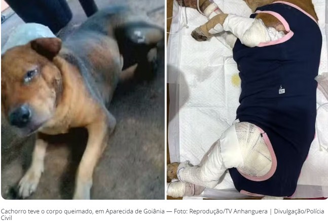 Suspeito do crime é um mecânico, que alegou ter ateado fogo no animal para proteger uma criança. Cachorro teve choque séptico, uma infecção generalizada, devido às queimaduras graves pelo corpo.