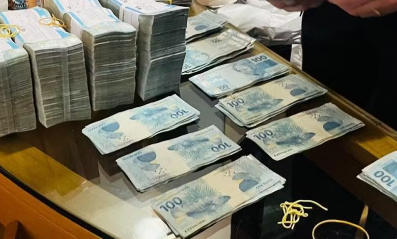 Dinheiro apreendido no flat usado pelo deputado Sóstenes Cavalcante, em Brasília – Foto: Divulgação/PF