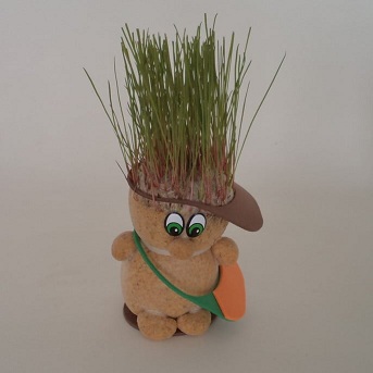 Um dos itens que integram o kit é o boneco ecológico, feito de pó de serragem com sementes dentro, envolto em um tecido de meia calça. Cada criança levará o boneco para casa irá se comprometer a regá-lo todos os dias, para poder apreciar o processo de ver as sementes germinarem e grama brotar, como se fossem os fios de cabelo do boneco.