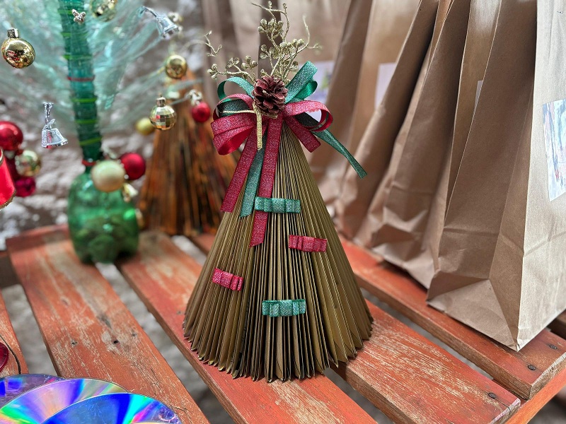 Projeto “Natal Sustentável” oferece capacitação para produção de enfeites e laços por meio do uso de materiais recicláveis, e ensina participantes a precificarem e comercializarem peças