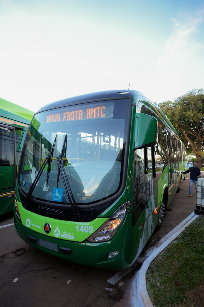 Durante a cerimônia, foram entregues cinco novos ônibus articulados movidos a biometano, os primeiros em operação regular no Brasil, consolidando o estado de Goiás como referência em inovação e sustentabilidade no transporte público. Desenvolvidos para atender às demandas da Nova RMTC, os veículos utilizam chassi Scania K 340C, com motorização a gás de 340 cavalos e tecnologia de emissões Euro 6, que garante baixos níveis de poluentes.