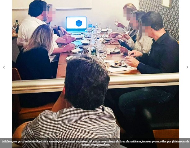 A Novo Nordisk se firmou entre os dez laboratórios que mais investem na relação com profissionais médicos em Minas Gerais nos últimos dez anos. Um dos esforços para a integração com profissionais é o programa Discussão de Caso Clínico, no qual a empresa aprova um estudo de caso elaborado por um médico convidado que tenha acompanhado pacientes com o uso da semaglutida, para que, durante um jantar, ele possa ter uma troca direta com pequenos grupos de três ou quatro outros profissionais, em geral endocrinologistas ou nutrólogos, sobre a experiência com os medicamentos. A interação entre os profissionais durante confraternizações pós-análises é publicada de forma recorrente em perfis de médicos nas redes sociais.