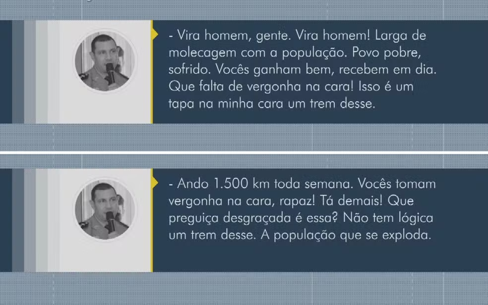 Ainda no áudio, o coronel fala sobre a necessidade de policiamento para população pobre e ressalta o pagamento dos policiais.