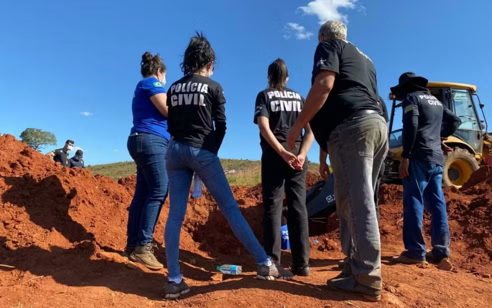 Com o uso de uma máquina, a polícia encontrou a ossada, que estava enterrada a aproximadamente 5 metros de profundidade. “Os restos mortais foram recolhidos pelo IML, bem como os pertences que foram arrecadados no local. As investigações prosseguem a fim de esclarecer a autoria e eventual participação de outros investigados no ato”, afirmou o delegado.