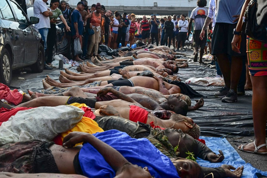 Fila de corpos, 132 mortos na operação policial mais letal no Brasil