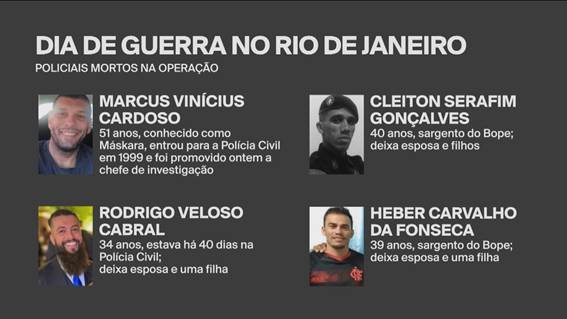 - Mas, na manhã desta quarta, o governador Cláudio Castro (PL-RJ) só confirmou oficialmente 58 mortos, sendo qe eram 54 criminosos. Ele não esclareceu por que o número do balanço de ontem foi alterado.