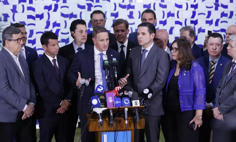 Nesta terça, durante entrevista à imprensa, o presidente da Câmara e Derrite estavam acompanhados de líderes partidários e deputados de siglas como PL, PP, PSDB, PDT, Novo, União Brasil e Solidariedade. A ideia era mostrar respaldo dos deputados e legendas.