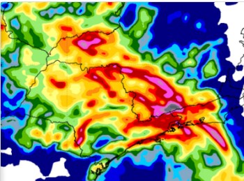 De acordo com o Inmet, essas regiões podem registrar chuvaentre 30 a 60 milímetros por hora ou de 50 a 100 milímetros por dia, além de ventos intensos, de até 100 km/h, e queda de granizo. O órgão alerta para risco de interrupção no fornecimento de energia elétrica, danos a plantações, queda de árvores e alagamentos.