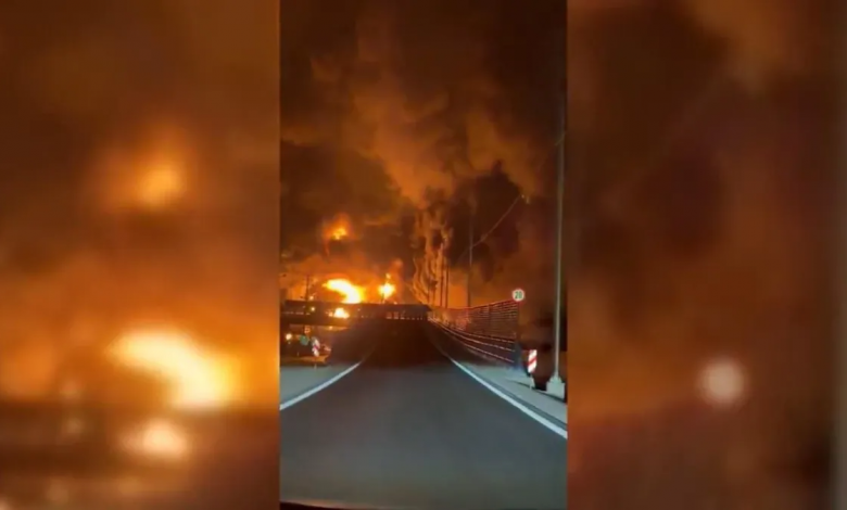 Vídeo mostra chamas intensas e fumaça perto de instalação de combustível. • Reprodução: Vahid Online/X