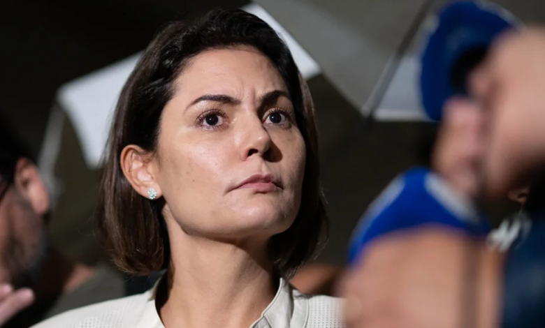 Michelle reage à imagem de Bolsonaro como palhaço em desfile sobre Lula
