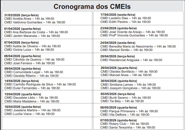 A iniciativa, coordenada pela Secretaria Municipal de Saúde (SMS) em parceria com a Secretaria Municipal de Educação, integra a campanha “Vacina Sim” e levará equipes de imunização diretamente aos CMEIs e escolas conveniadas entre os meses de março, abril e maio de 2026.