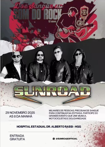A 12ª edição do Doe Sangue ao Som do Rock do Hospital Estadual Alberto Rassi (HGG) para aumentar os estoques de sangue, principalmente em períodos críticos como o fim de ano, vai acontecer no dia 29 de novembro e promete superar as expectativas de doações e atrações das versões anteriores. A proposta continua a mesma: fazer o bem ao próximo com doação de sangue ao som do velho e bom Rock and Roll. Este ano, entre as novidades mais aguardadas do evento, está a participação da banda de hardcore Sunroad, que já é um ícone lendário mundial do rock brasileiro e goiano.