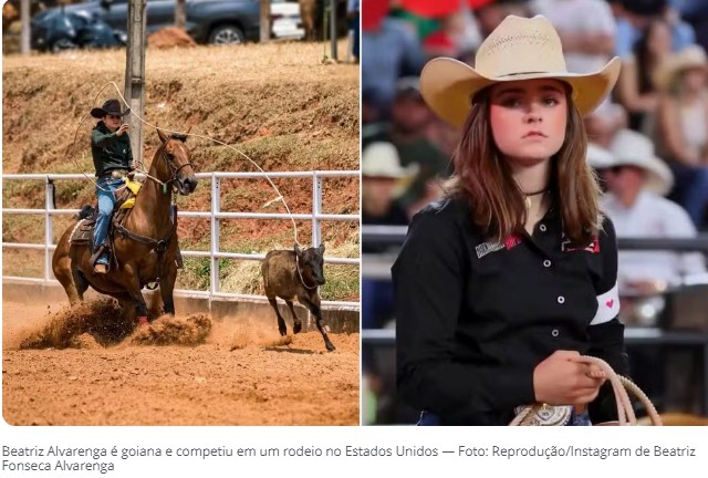 Beatriz Fonseca Alvarenga, de 20 anos, é goiana e começou na modalidade esportiva de rodeios, breakaway roping, aos 14 anos, de acordo com ela em suas redes sociais. Após ter conquistado o menor tempo na categoria em uma competição em Barretos em 2025, a jovem participou do The American Rodeo, nos Estados Unidos.