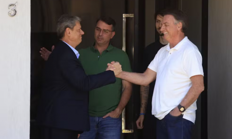 O governador de São Paulo, Tarcísio de Freitas (Republicanos), faz uma visita, nesta segunda-feira (29), ao ex-presidente Jair Bolsonaro (PL), que cumpre prisão domiciliar em Brasília. O senador Flávio Bolsonaro (PL-RJ) e o vereador Jair Renan (PL), de Balneário Camboriú (SC), acompanham o encontro.
