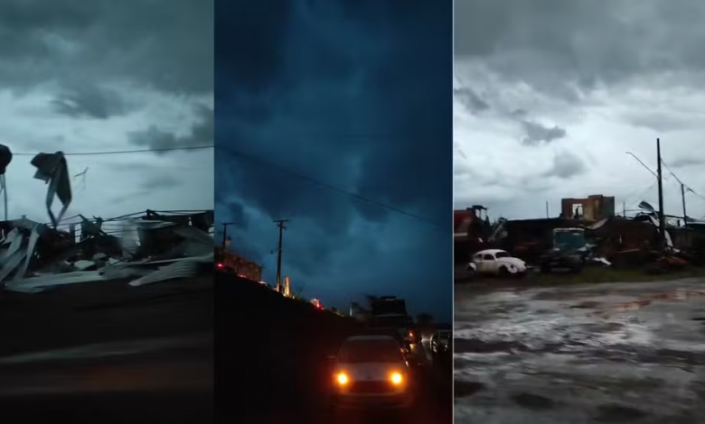 Tornado causa destruição em Rio Bonito do Iguaçu, no Paraná – Foto: Reprodução/Redes sociais