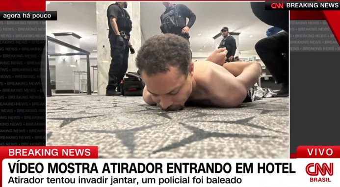 O presidente dos Estados Unidos, Donald Trump, divulgou imagens que mostram a resposta do Serviço Secreto à ação do atirador de 30 anos que invadiu um jantar de correspodentes da Casa Branca, em Washington, na noite deste sábado (25).
