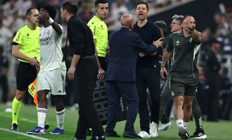 Técnico do Real, Xabi Alonso foi o primeiro a se aproximar de Vini Jr. para acalmar o brasileiro, mas também discutir com Simeone. Integrantes das duas comissões técnicas entraram em ação para apaziguar os ânimos, enquanto o zagueiro Antonio Rüdiger, que já tinha sido substituído, afastava Vini Jr. da confusão. Parte da torcida local gritou o nome do brasileiro após as vaias iniciais.